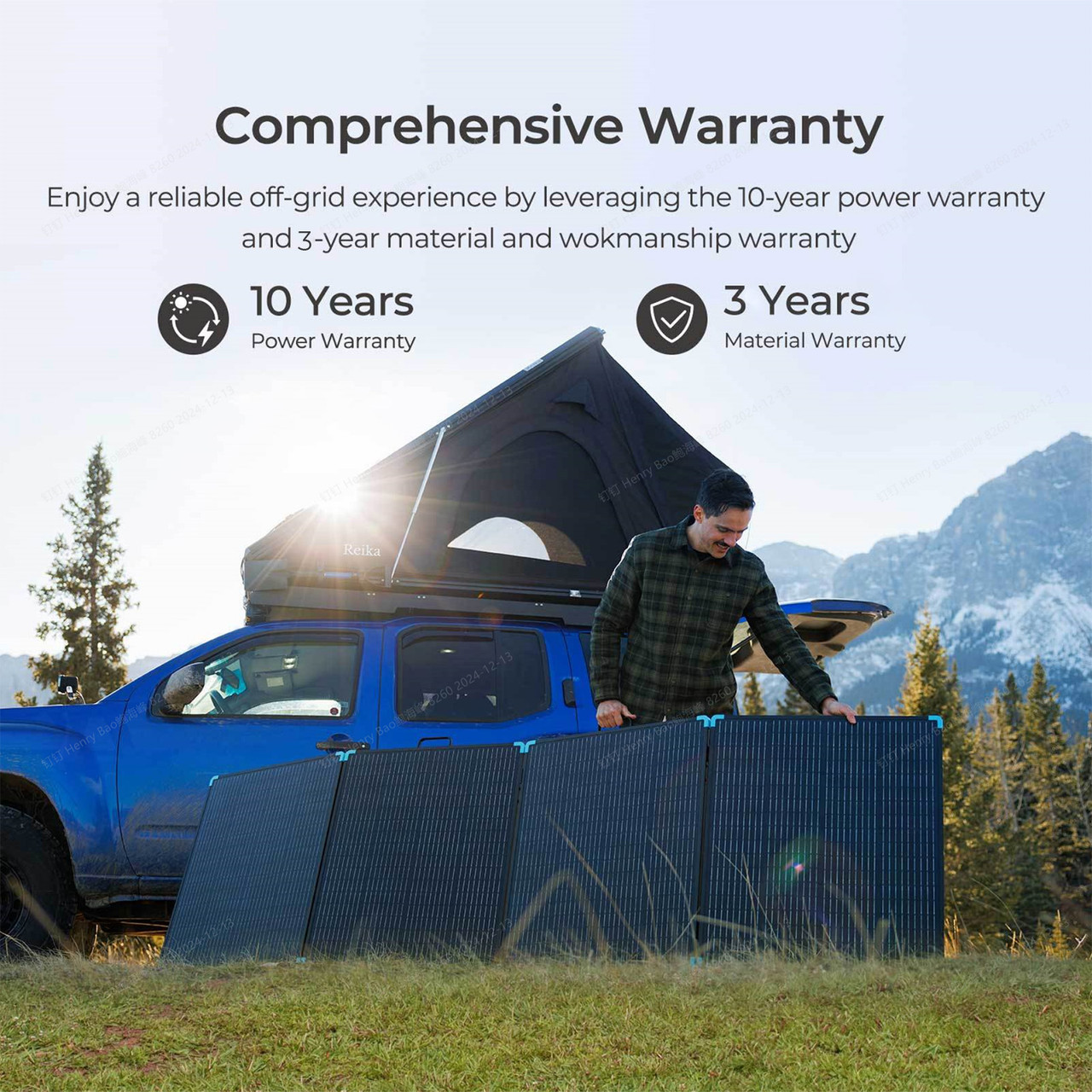 This portable solar suitcase offers 23% cell efficiency by maximizing module potential and harnessing compact solar cell layouts for enhanced module efficiency. Enjoy uniterrupted power for hours, even when travelling in your van or RV.