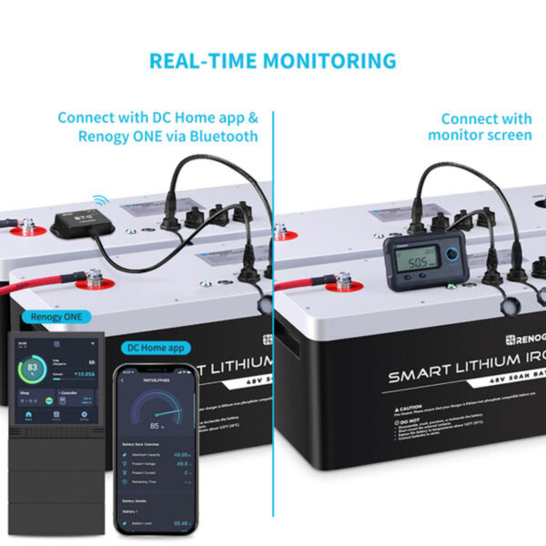 Keeping your 48V 50Ah LiFePO4 Battery on track is easy. You can either connect a BT-2 Bluetooth Module to the RS485 port for on-the-go monitoring or opt for a battery monitoring screen to check data at a glance.